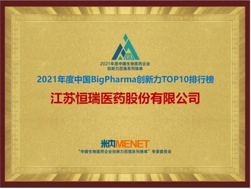 9月16日,由米内网主办的“2021年度中国生物医药企业创新力百强系列榜单”发布会在线上举办。AG体育医药继去年登顶“中国BigPharma企业创新力TOP10排行榜”后,今年再次名列该榜单首位。
