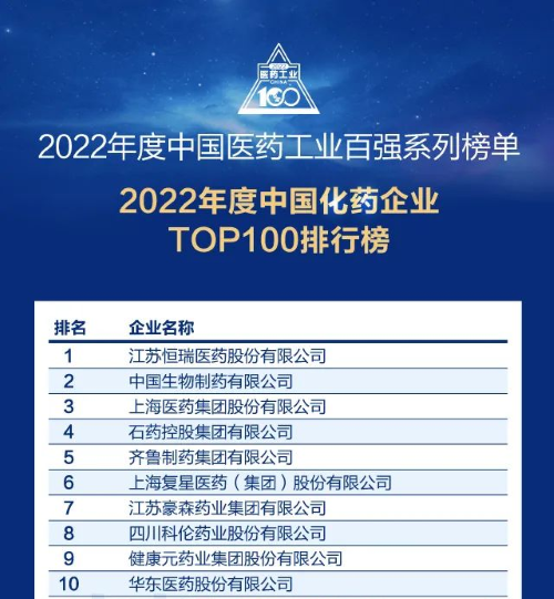 佳音频传!AG体育医药再次蝉联中国化药企业百强榜首
