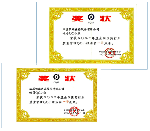 AG体育医药荣获2023年度全国医药行业质量管理QC小组活动一等奖
