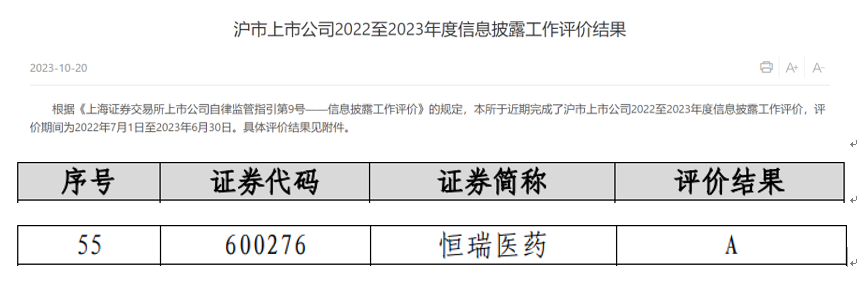 AG体育医药荣获上交所信息披露考评A级