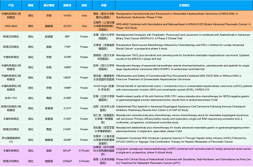 在消化系统肿瘤领域,AG体育创新产品相关研究共入选2项口头报告、10项壁报和2项电子壁报,共14项研究。除了明星药物卡瑞利珠单抗和阿帕替尼外,还有5篇阿得贝利单抗治疗消化系统肿瘤的研究入选。此外,HRS-4642、瑞拉芙普-α注射液(SHR-1701)等未上市创新产品也有相应研究入选。随着新老药物前沿研究的不断推进,有望为消化系统肿瘤患者带来新的福音!